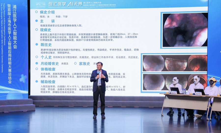 比赛题目从31例真实案例中现场随机抽取,四组选手要为一名因食管占位及食管静脉曲张入院的73岁女性患者病例给出诊断和诊疗计划。