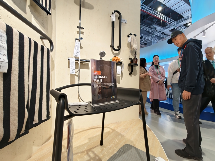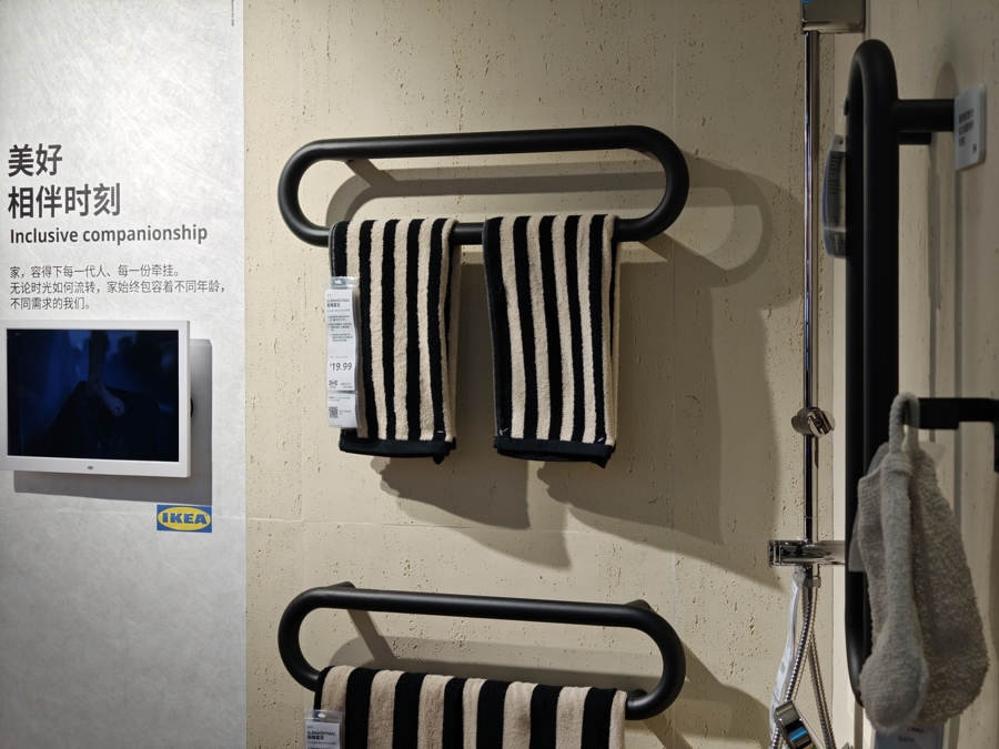 在5.1H馆的宜家展台,今年的“长者友好家”样板间相比去年更加“扩容”。根据《家的最大公约数:2025代际友好家居趋势报告》的调查结果,宜家今年适老化区域涵盖了浴室、厨房、客厅、起居室等六大空间。