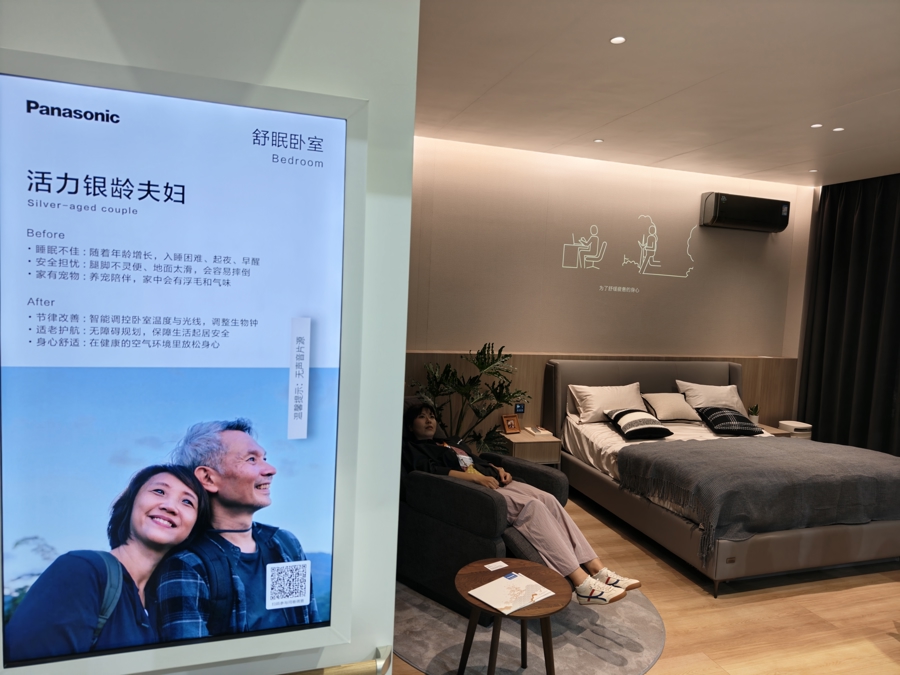 同样在5.1H馆的松下展台,今年也展示了一系列聚焦“银发科技”的产品。在“活力老人”的卧室翻新改造样板间里,记者看到,从照明、空调,到电动床、防滑地板,都无微不至地保障着老年人生活起居的舒适度与安全性。