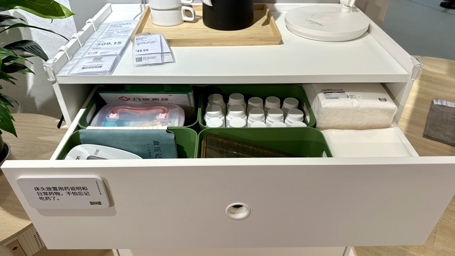 厨房水槽和灶台下方,为何缩进20-30厘米?左右台面,为何相差10厘米?柜门为何使用全透明玻璃?……在宜家展台,一个“长者友好家”样板间,让人看到了适老家居是如何通过每一个小细节实现的。