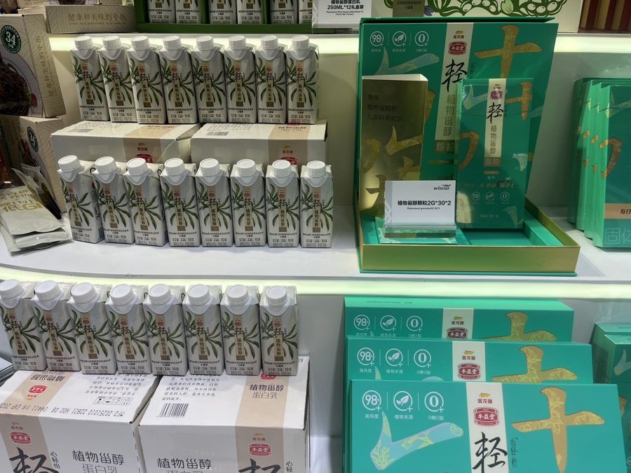中国现有4亿超重肥胖人群、3亿多心血管病人、1亿多糖尿病人,膳食干预正成为破解“重治疗、轻预防”难题的密码。同样位于8.1H馆的益海嘉里金龙鱼大健康营养谷物产品负责人郑金玲表示,企业带来了几款进博首发新品,其中就包含了植物甾醇蛋白乳。这是一款添加了植物甾醇的功能性食品,植物甾醇是天然存在于植物中的活性成分,结构与胆固醇相似,可以和胆固醇形成竞争性吸收,促其排出,达到护心效果。