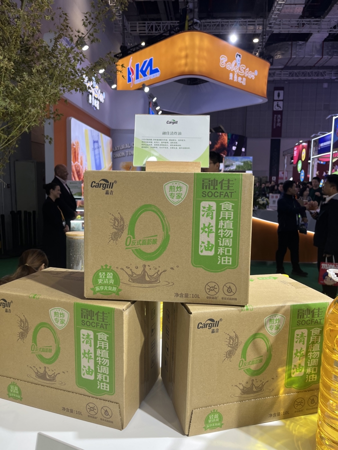 老人有时烧菜喜欢多放油,对身心不太健康。进博会上,嘉吉展示了新一代液态煎炸油“融佳清炸油”。它专为中式餐饮健康升级设计,采用葵油与高油酸菜籽油的黄金配比,令不饱和脂肪酸含量高达89%,同时又能实现零反式脂肪酸。“这款展品精准契合餐饮健康化的趋势,能满足中国居民多样化的健康消费需求。”赵青说。