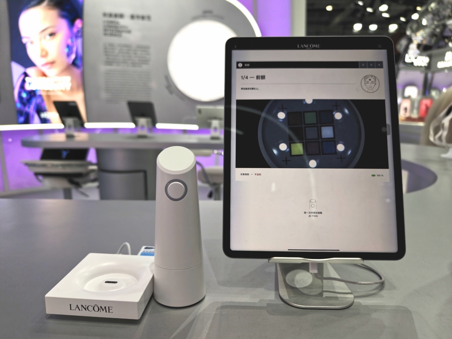 兰蔻“芯”级肌肤解码仪是欧莱雅在本届进博会面向中国首发的一款最新科技产品,采用微流控芯片实验室技术,助力消费者了解自身皮肤老化轨迹。“仪器会对所提取的皮肤角质层进行成分分析,从微生物群调节、营养感知、结构完整性、屏障功能、炎症过程等五个维度测算皮肤的生物年龄,提供可延缓皮肤衰老的个性化护肤方案。”叶成达说,解码仪能帮助用户发现皮肤问题,而兰蔻塑颜美容仪则为干预和修复皮肤衰老提供高效解决方案。