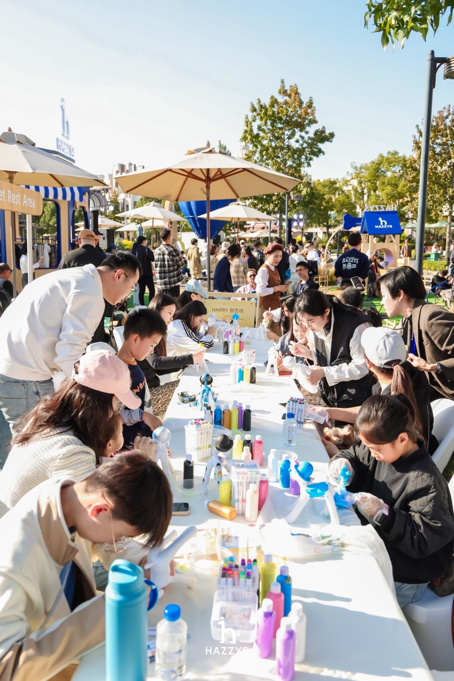活动现场划分为多个宠物友好功能区。在HAZZYS POPUP区域,集中呈现品牌全新秋冬巴恩系列,该系列以经典英伦美学为灵感,通过细腻面料与简约剪裁,在柔软质感中传递优雅态度,吸引了众多时尚人士驻足和试着。