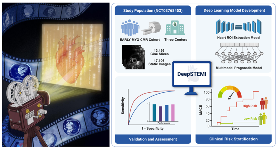 近日,上海交通大学医学院附属仁济医院心内科卜军教授团队与上海交通大学计算机学院盛斌教授团队医工交叉联合,在国际重要综合性期刊《Science Bulletin》(中科院1区TOP期刊,IF=21.1)在线发表原创研究论文,研究团队依托前瞻性多中心影像大队列(NCT03768453),成功研制出一种基于心脏影像的全新人工智能预后预测系统(命名为DeepSTEMI), 该系统可精准预测急性心肌梗死患者未来发生心血管事件的风险。DeepSTEMI系统通过融合解析多源影像特征,实现了自动化、智能化的风险分层,为急性心梗患者的精准管理提供了新的技术工具。