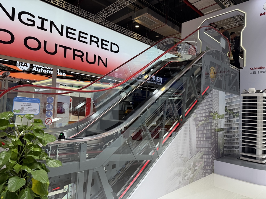 再走几步,迅达电梯现场展示了一台自动扶梯——这是迅达电梯今年重点推出的“存量电梯焕新”解决方案。迅达电梯还将展示机器人电梯安装系统,在全自动安装、强化安全、提升质量与效率等方面具有优势。该技术已在上海徐家汇中心和广州国际文化中心落地,为高层建筑的电梯安装提供了解决方案。同时,迅达电梯还展示了智慧维保系统,将通过物联网技术,实现电梯运行数据的实时监控与分析,能精准预测潜在故障并提前进行维护,最大限度减少停机时间。